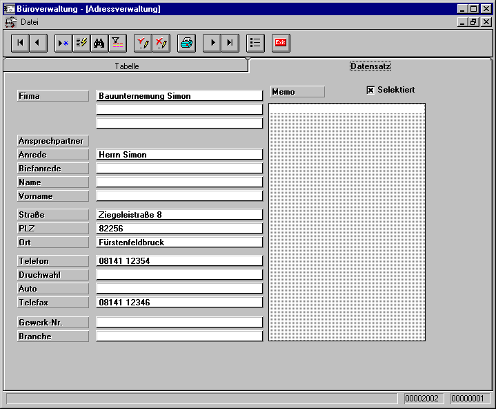 Die Adressverwaltung kann wahlweise in Dialogform oder als Tabelle angezeigt und