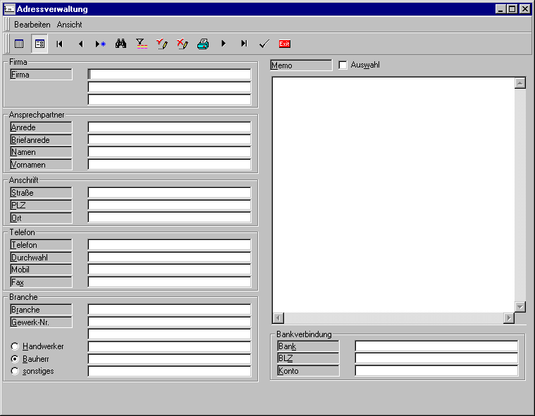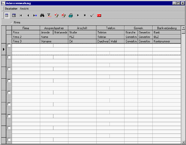 Die Adressverwaltung kann wahlweise in Dialogform oder als Tabelle angezeigt und