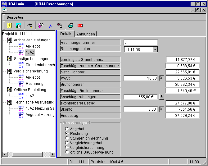 Diese Maske zeigt im schnellen Überblick alle zum aktuellen Projekt erstellten Angebote und Rechnungen. So ist man schnell auf dem Laufenden ....