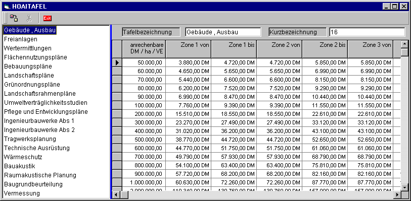 Es sind in HOAI win natürlich alle Honorartafeln der HOAI